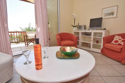 There is a private furnished balcony with sea view to Ionian Sea. The villa comes with access to the Ocean pool area which includes a shared swimming pool of 7 x 14 m, a children pool of 3 x 3 m, a barbeque area, washing machine area.