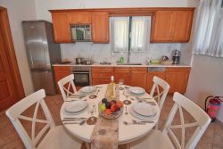 The villa can accommodate two extra guests in the sofa-beds available in the living room. There is an open plan living/dining area and a fully equipped kitchen.