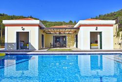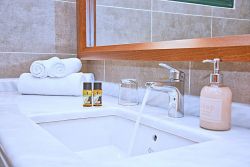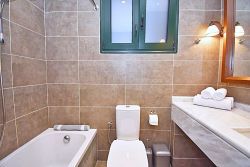 Notre élégante villa Semeli se compose de deux chambres dont une avec lit queen size et une salle de bains avec baignoire, et une chambre avec 2 lits jumeaux et une salle de bains avec douche.