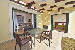 La villa peut accueillir deux personnes supplémentaires dans les canapés-lits disponibles dans le salon. Il y a un espace ouvert salon/salle à manger et une cuisine entièrement équipée, espace de buanderie commun.